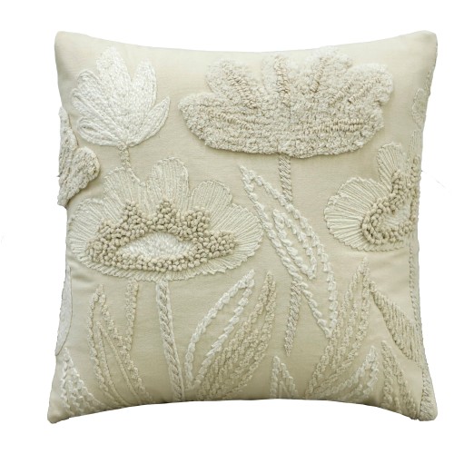 Cream Floral Stitched Boucle Cushion 45x45cm