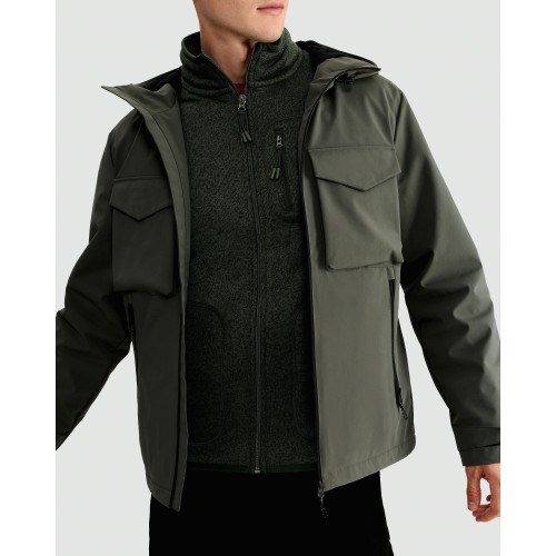 Hooded Collared Shower Resistant Raincoat in Khaki