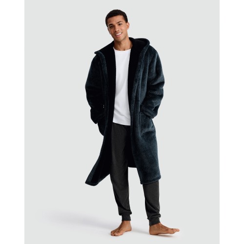 Fleece Herringbone Textured Dressing Gown in Teal
