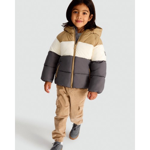 F&F Boys Shower Resistant Hooded Puffer Jacket in Khaki