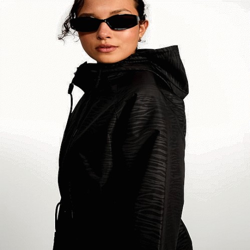 Animal Print Shower Resistant Hooded Raincoat in Black