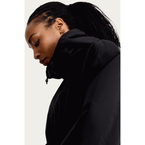 Hooded Longline Shower Resistant Raincoat in Black