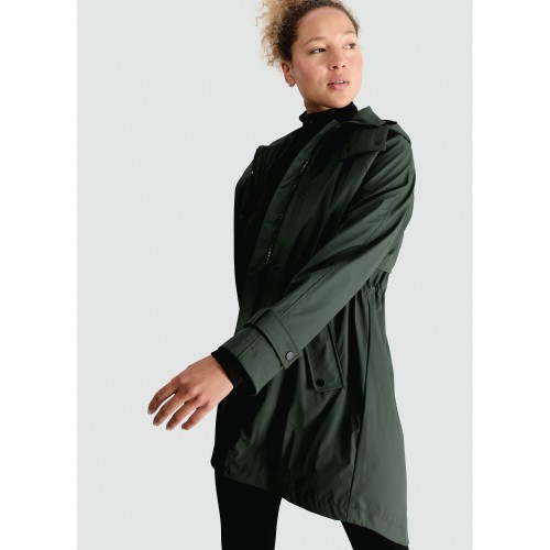 Hooded Collared Shower Resistant Raincoat in Khaki