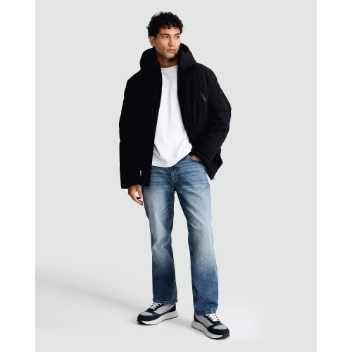 Hooded Shower Resistant Puffer Jacket in Black