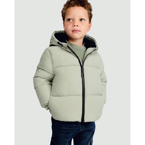 F&F Boys Shower Resistant Hooded Puffer Jacket in Khaki