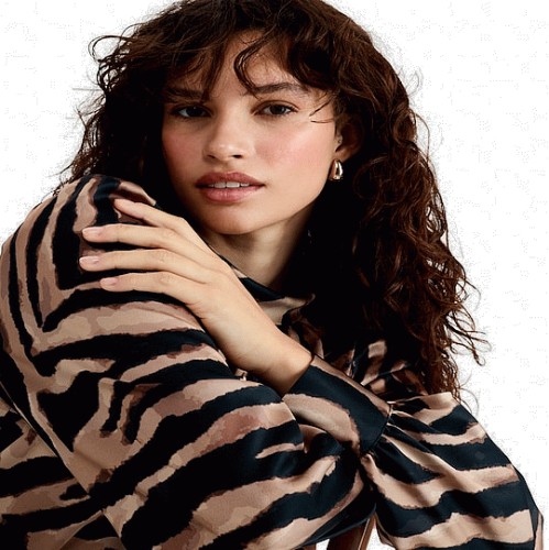 Satin Zebra Print Tie Neck Blouse in Multi Brown