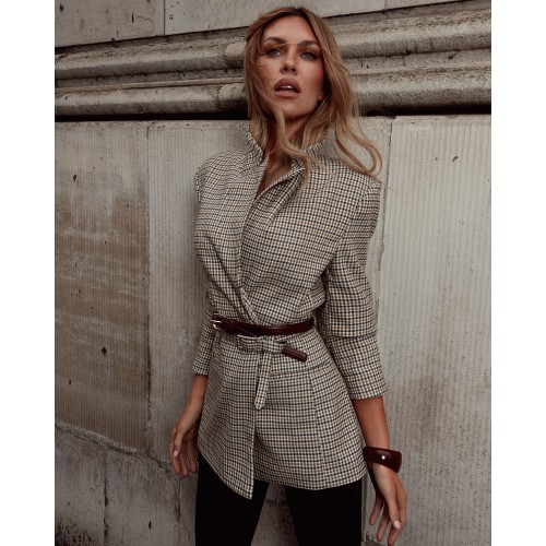 Houndstooth Print Belted Co-ord Blazer in Neutral