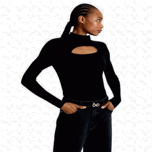 Knitted Sequin Bow High Neck Jumper with Wool in Grey