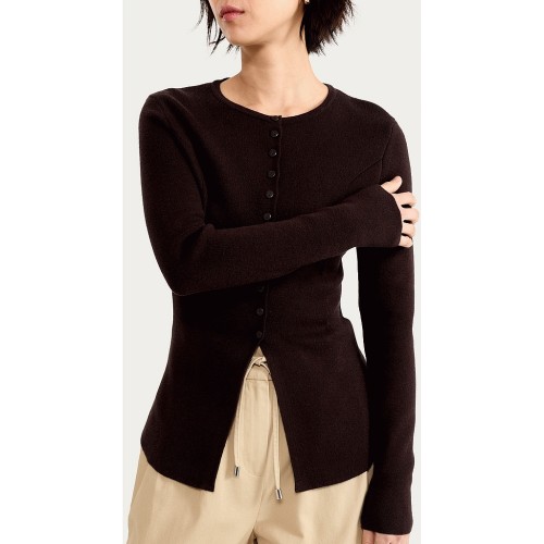 Knitted Button Front Cardigan in Chocolate