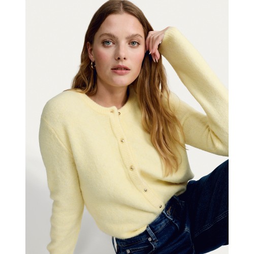 Pure Cotton Knitted Button Front Hooded Cardigan in Blue