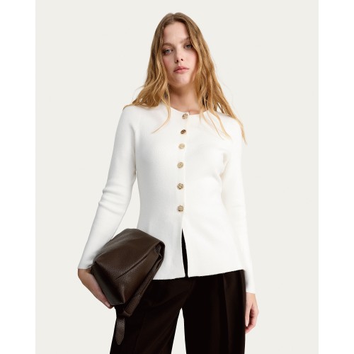 Knitted Button Front Cardigan in Cream