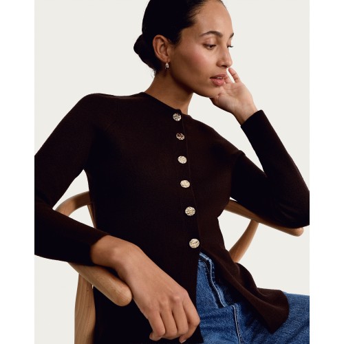Knitted Diamante Embellished Button Up Cardigan with Wool in Grey