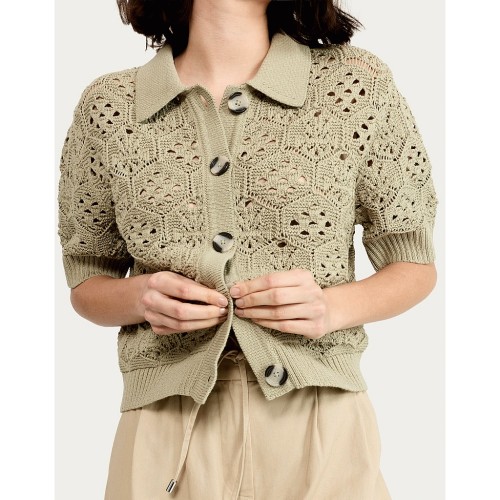 Knitted Button Up Short Sleeved Cardigan in Yellow