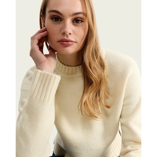 Chenille Cable Knit Crew Neck Jumper in Cream