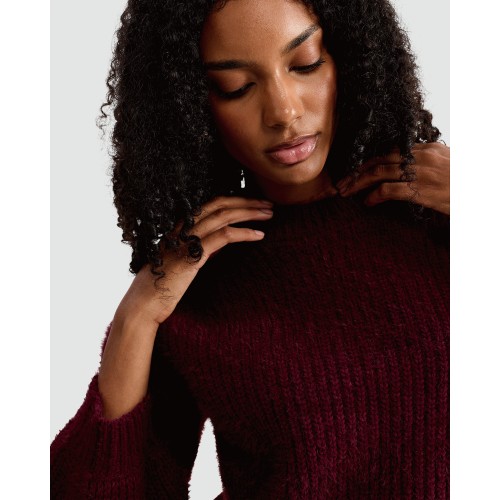 Lambswool Knitted Crew Neck Jumper in Burgundy