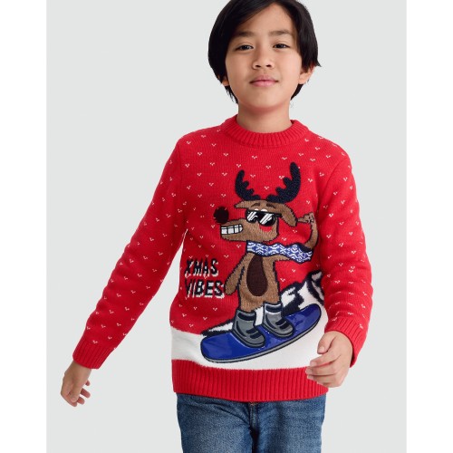 F&F Boys Knitted Xmas Vibes Slogan Jumper in Red