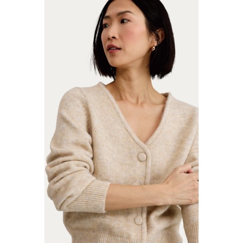 V Neck Button Up Balloon Sleeved Co-ord Cardigan in Chocolate