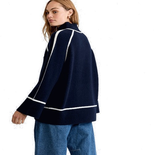 Contrast Trim High Neck Jumper with Wool in Navy