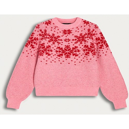 Knitted Snowflake Pattern Jumper in Pink