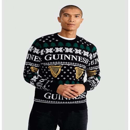 Guinness Pure Cotton Festive Print Knitted Jumper in Black