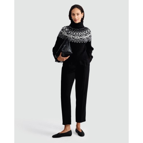 Knitted Fair Isle Pattern Roll Neck Jumper with Wool in Black
