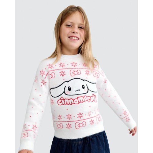 Cinnamoroll Snowflake Print Knitted Jumper in White