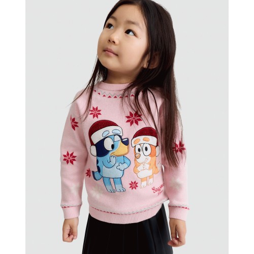 Bluey Seasonal Fun Print Knitted Jumper in Pink