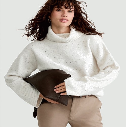 Knitted Nep Roll Neck Tunic with Wool in Cream
