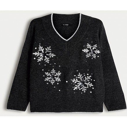 Knitted Sequin Bow High Neck Jumper with Wool in Grey