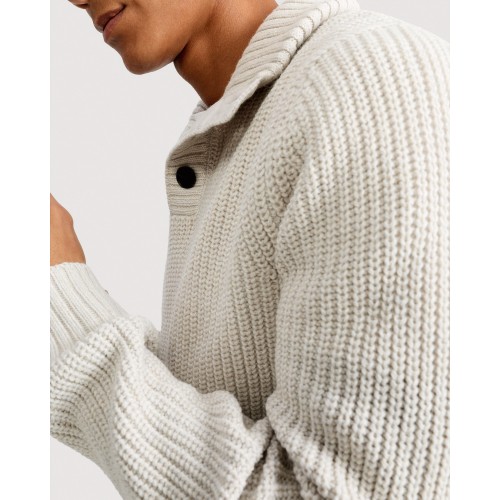 Knitted High Neck Buttoned Jumper with Wool in Cream