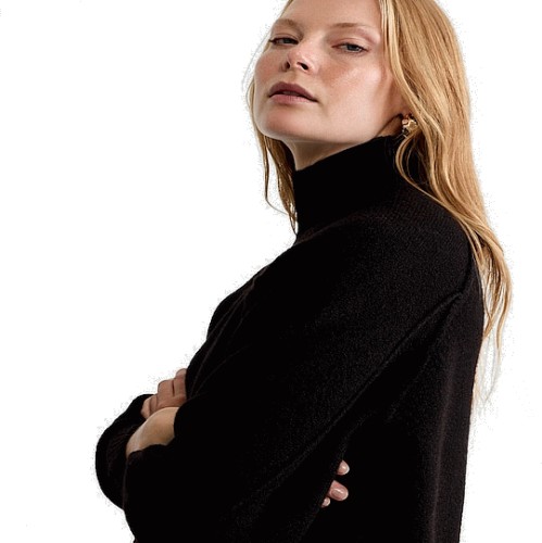 Knitted Roll Neck Jumper with Wool in Black
