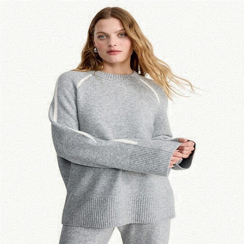 Knitted Raglan Sleeved Jumper with Wool in Grey