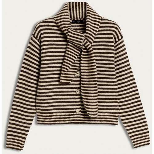 F&F Knitted Stripe Scarf Cardigan in Brown
