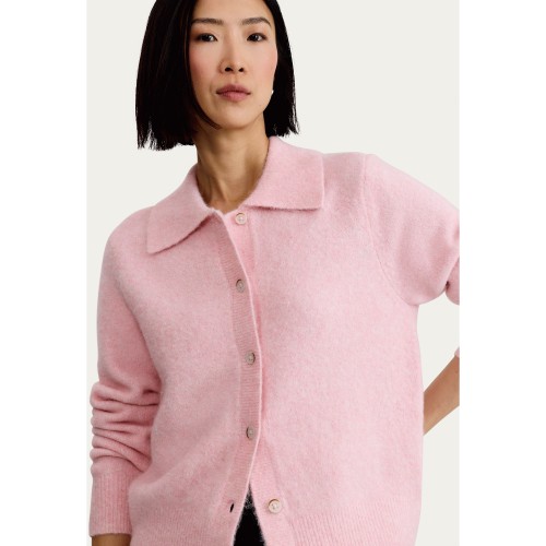Pure Cotton Knitted Button Front Hooded Cardigan in Multi Pink