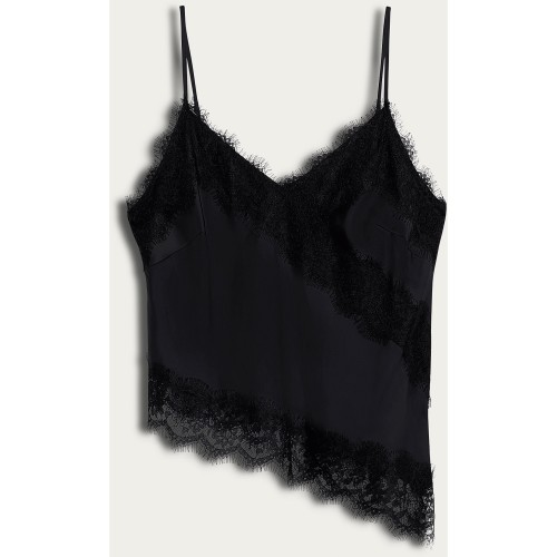 Satin Lace Trim Asymmetric Hem Co-ord Cami Top in Black