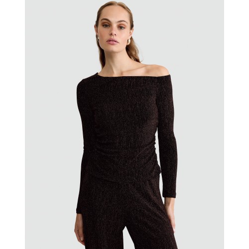 Sparkle Asymmetric Long Sleeved Co-ord Top in Brown