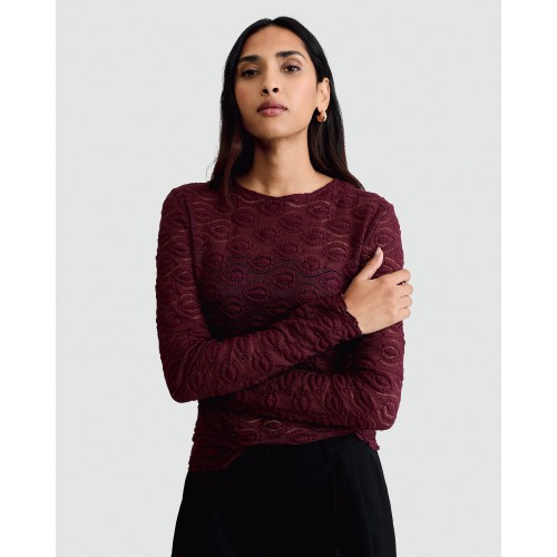 Medium Warmth Thermal Lace Trim Long Sleeved Top in Pink