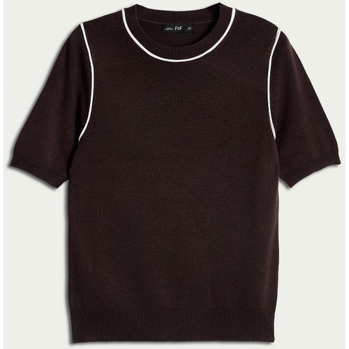 Contrast Trim Short Sleeved Jumper in Brown