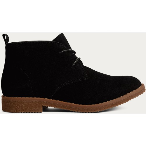 Faux Suede Lace Up Ankle Boots in Black