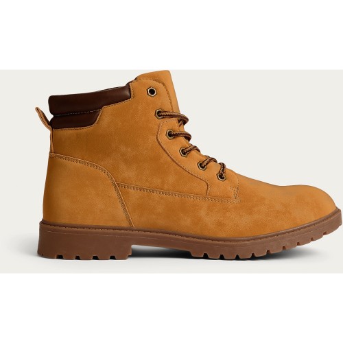 Lace Up Worker Ankle Boots in Tan