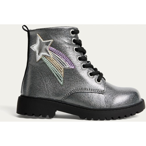Girls Metallic Lace Up Ankle Boots in Grey