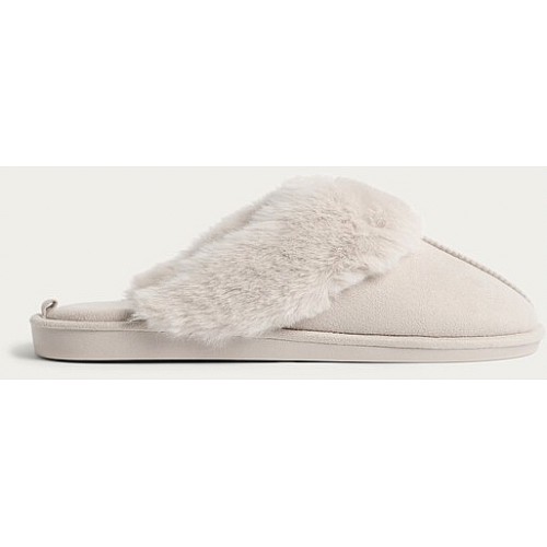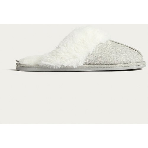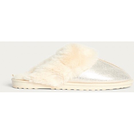Metallic Faux Fur Trim Mule Slippers in Gold
