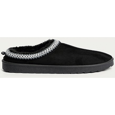 Boys Padded Faux Fur Lined Mule Slippers in Black