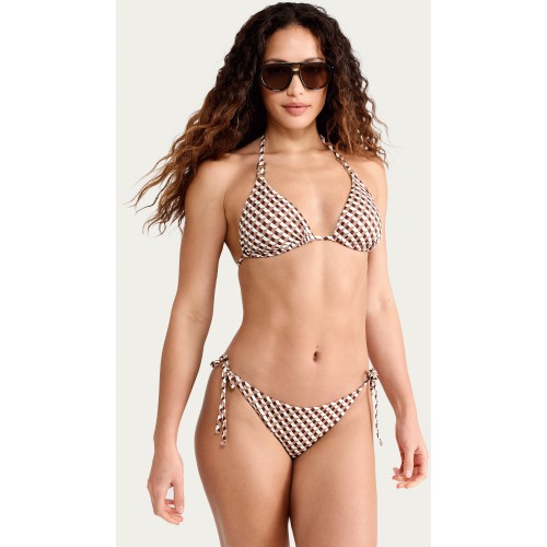 Geometric Print Tie Side Bikini Bottoms in Multi Brown
