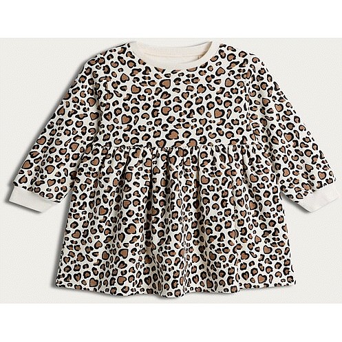 F&F Girls Cotton Rich Leopard Print Sweat Dress in Multi Brown