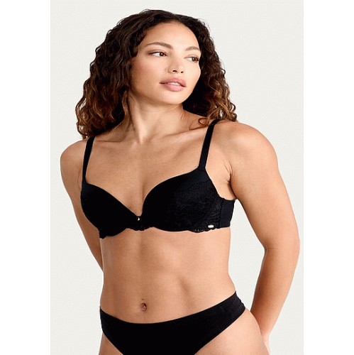 Floral Lace Wired Push Up Bra in Black