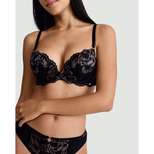 Floral Lace Wired Push Up Bra in Black