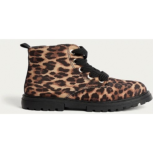 Girls Leopard Print Lace Up Boots in Multi Brown