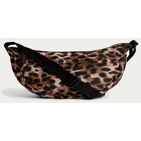 Leopard Print Zip Closure Crossbody Bag in Multi Brown