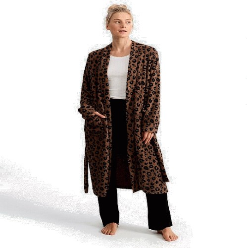 Fleece Leopard Print Dressing Gown in Multi Brown